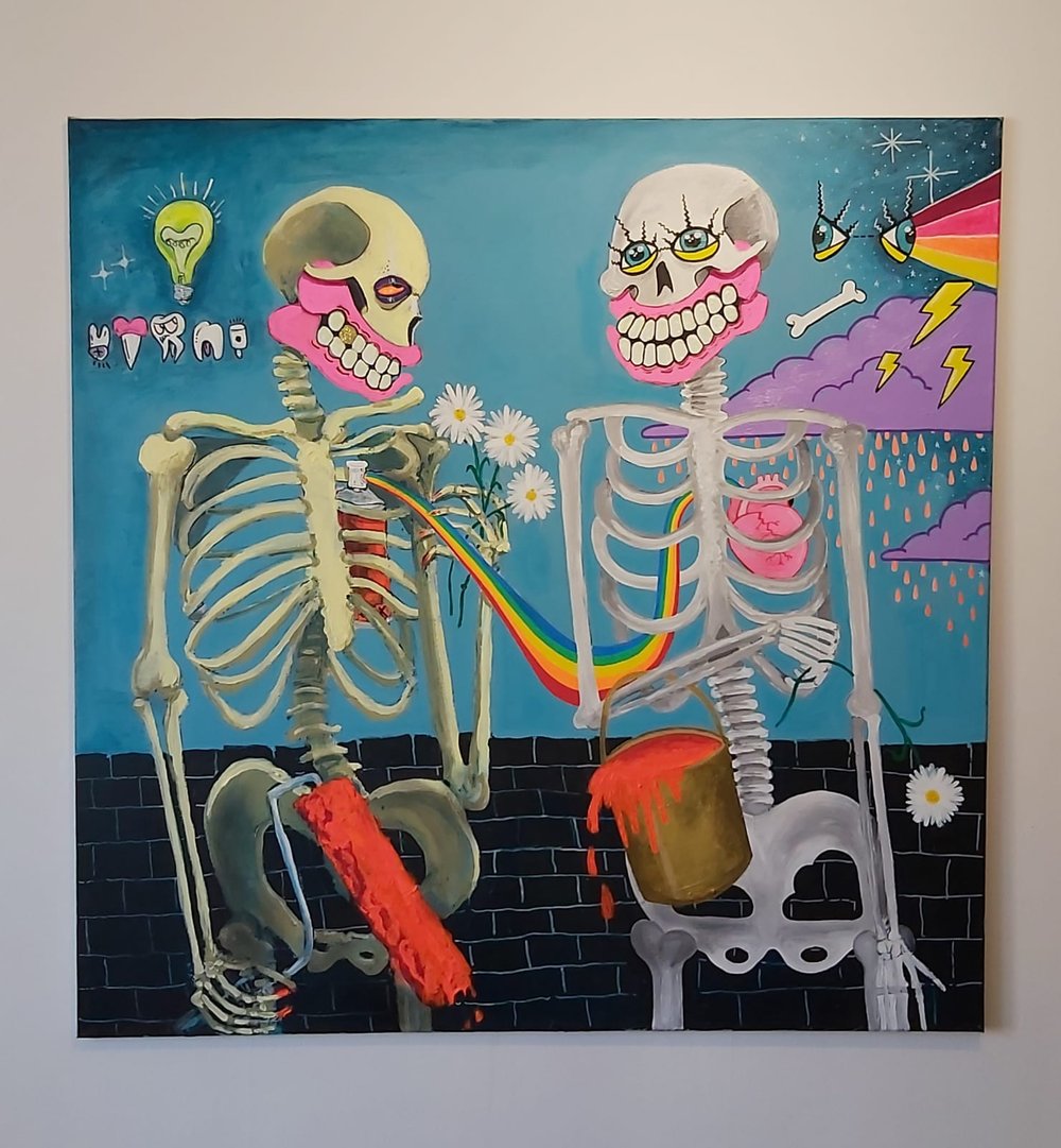 Daisy Bones Original Lowbrow Skeleton Painting Lowbrow Misfits White Stag Art